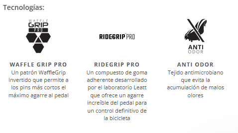 - Compuesto RideGrip™ PRO: Mejora la sensación y el control del pedal, proporcionando un agarre superior.
